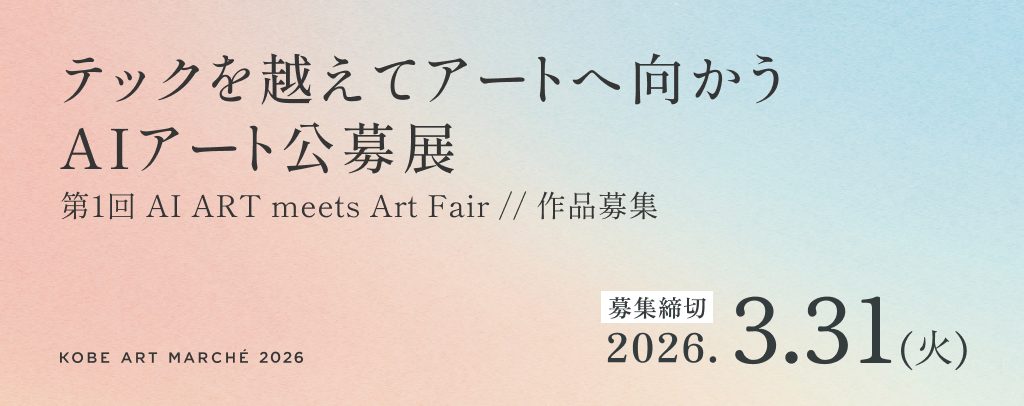 「KOBE ART MARCHÉ」では、このたび公募展『AI ART meets Art Fair』を初開催し、選考により入選した作品を「KOBE ART MARCHÉ 2026」会場内に展示します。 AIを制作プロセスに取り入れた作品を広く公募し、現代アートの文脈から審査を行うことで、AIを活用した表現をテクノロジー領域にとどめることなく、アート作品として鑑賞・発表する場を創出します。