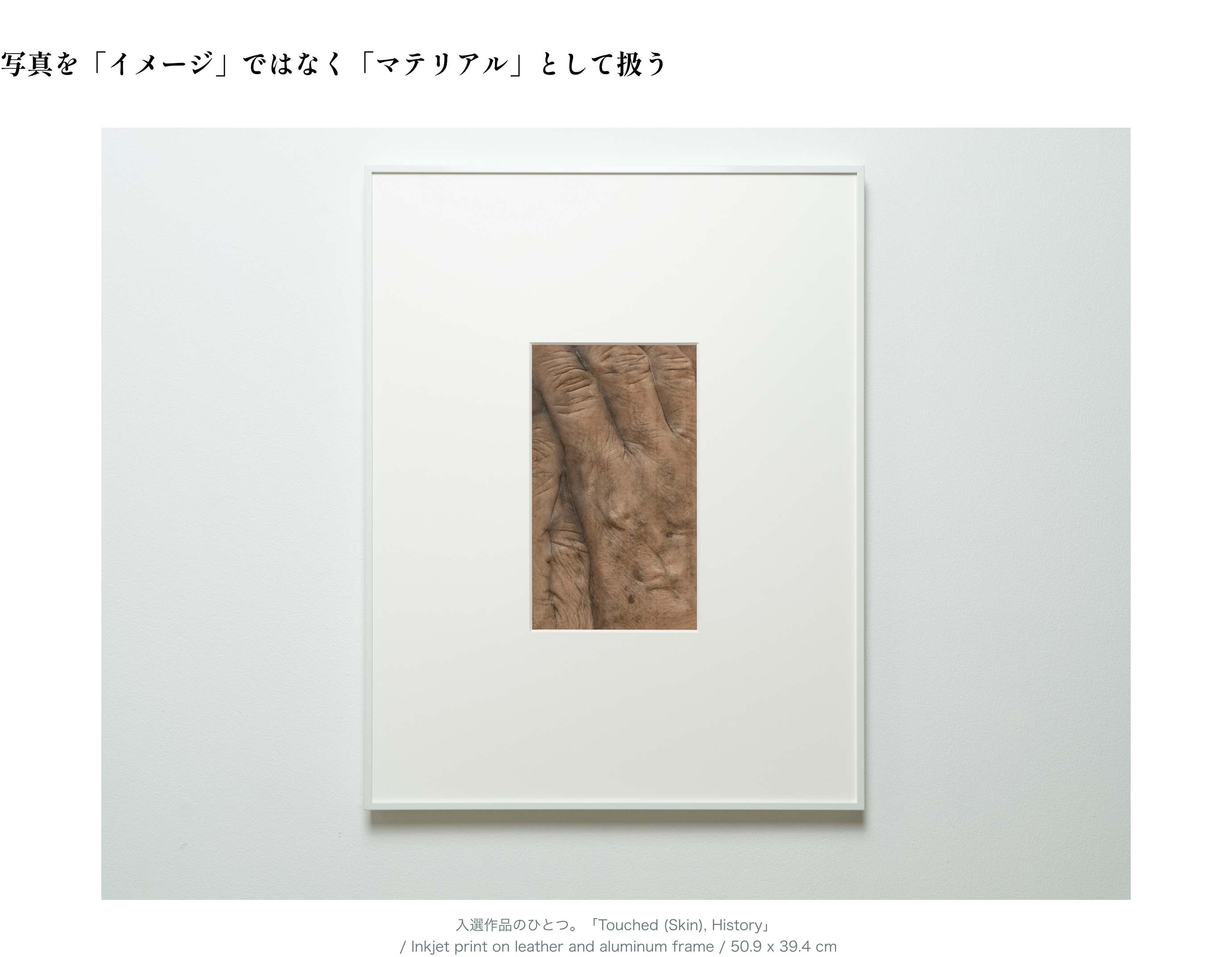 アート、特に写真は本来、鑑賞者との間に物理的な距離があるメディアです。その距離を縮め、イメージを「もの(マテリアル)」として定着させるために、私は支持体として「ヌメ革」を選びました。日常的な革に、あえて人間の身体をプリントする。そこに生まれる違和感やおどろおどろしさを通じて、鑑賞者の感覚や記憶を揺さぶりたいと考えたのです。