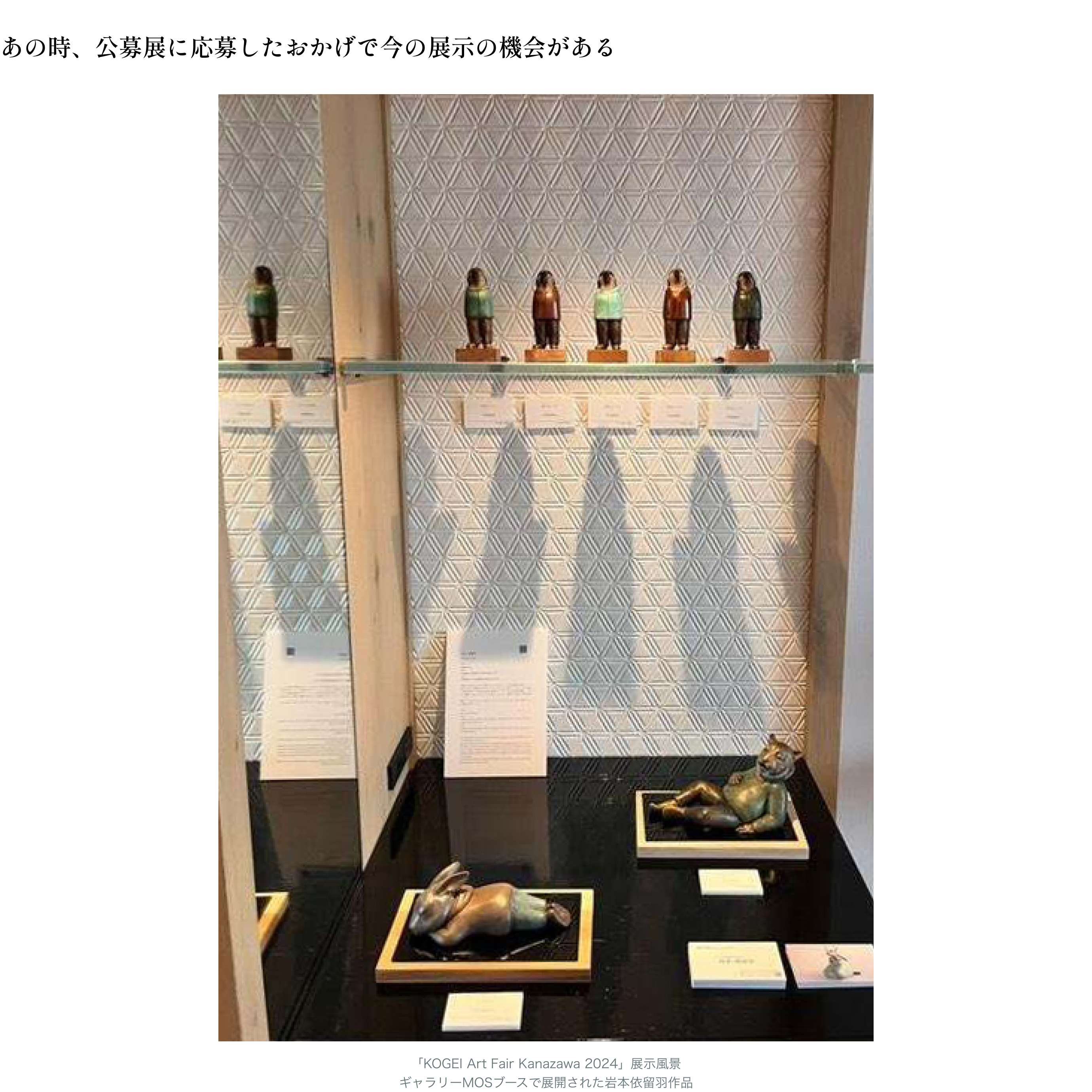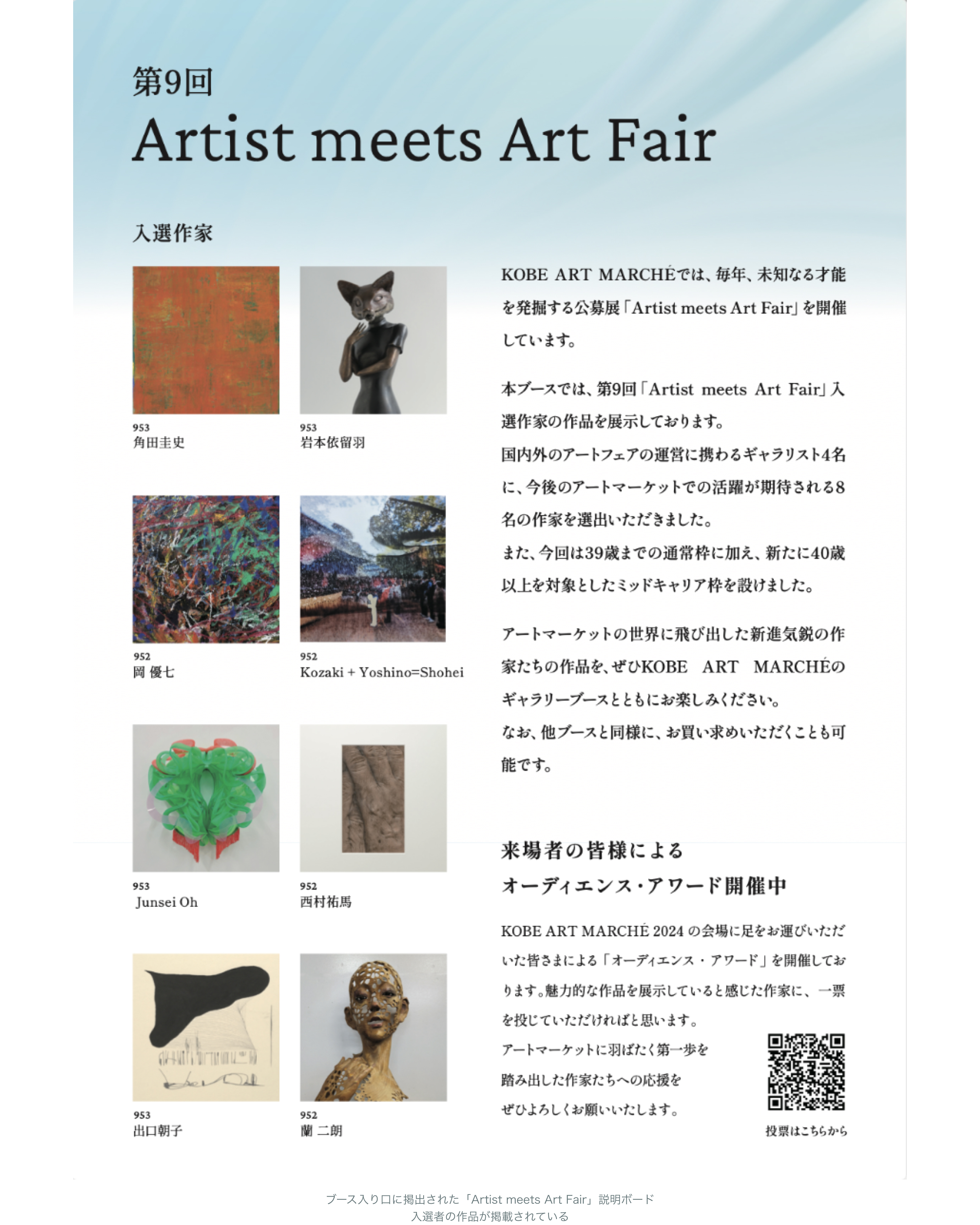 KAM2024会期中に、芝田町画廊さんにお声がけいただいて、今年の夏に個展をします。他にも神戸北野美術館で1/7まで展覧会に参加していて、それも「Artist meets Art fair」に入選したことが後押しになったように思います。